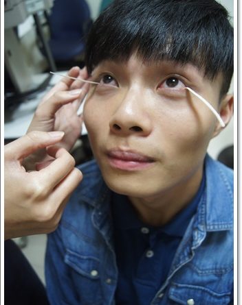 接下來是要在眼睛上麻藥,我記得護士說要量角膜厚度,以及做淚液測試,也要點散瞳劑,是要讓肌肉放鬆的作用,我朋友一邊幫我拍照還一邊笑我,看到照片我才知道原來我緊張的樣子還真有趣~