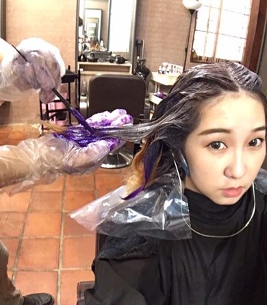 本來以為只要在髮尾的地方挑染一下就可以了,但設計師看過我的頭髮之後,跟我說我首先必須要先處理我的布丁頭,讓上面新長出來的頭髮淺一點,髮尾的地方因為我要染比較特別的紫色,所以要先漂過把頭髮漂淺,顏色才上的去~