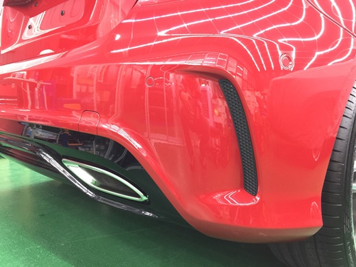 大紅色的車身,在聚硅氧烷鍍膜後,亮度是直線攀升,顏色感覺更鮮豔!