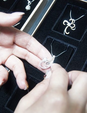 店員根據我挑中的鑽石項鍊拿出證書讓我跟鑽石上的編號相對應!
