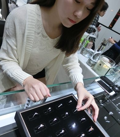 她細心的教我們怎麼觀察鑽石的亮度和切割面